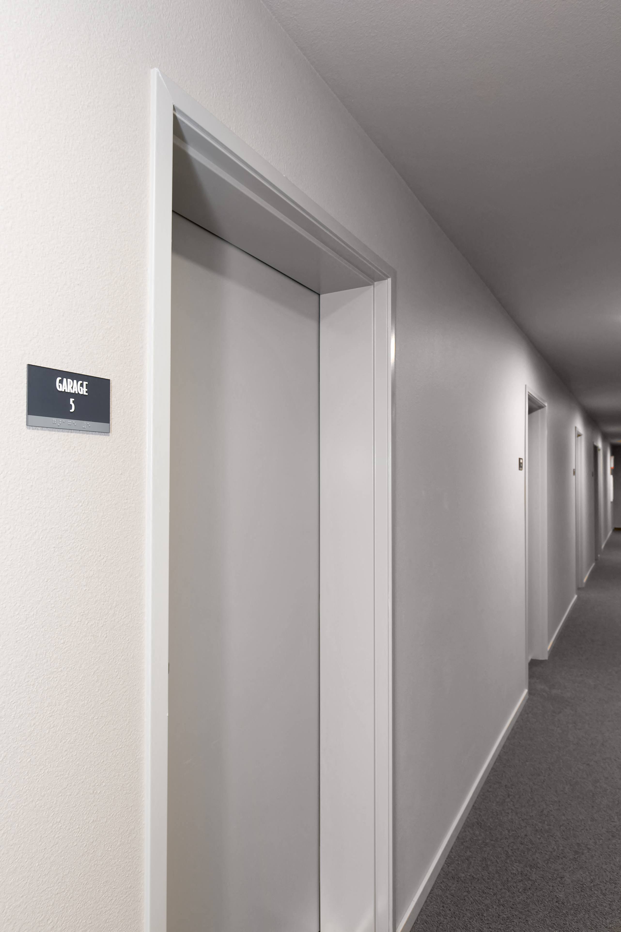 Dark Gray Door White Trim With A Hint Of Gray And A Light Gray Hallway Will Use This In Garage Grey Walls White Trim Remodel Bedroom Trendy Living Rooms